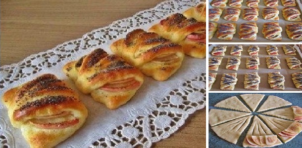 Coloque las piezas de trabajo en una bandeja para hornear y engrase con una mezcla: 1 yema + 1 cucharada. 1. Leche, espolvorea con semillas de amapola.