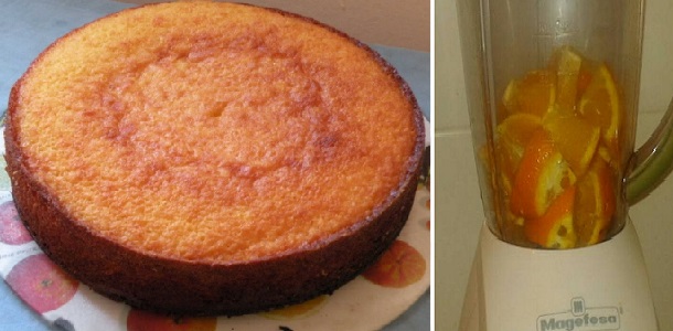 Licuar la naranja cortada en trozos medianos, los huevos, el azúcar y el aceite.